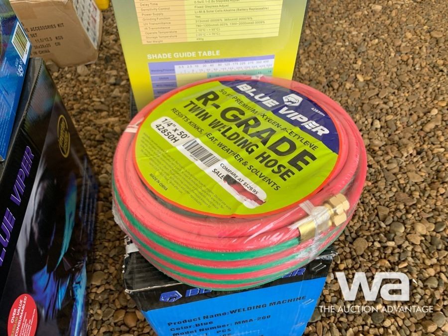 50 FT. PREMIUM OXYGEN- ACETYLENE TWIN WELDING HOSE 1/4" X 50 FT., AUTO DARKENING WELDING HELMET