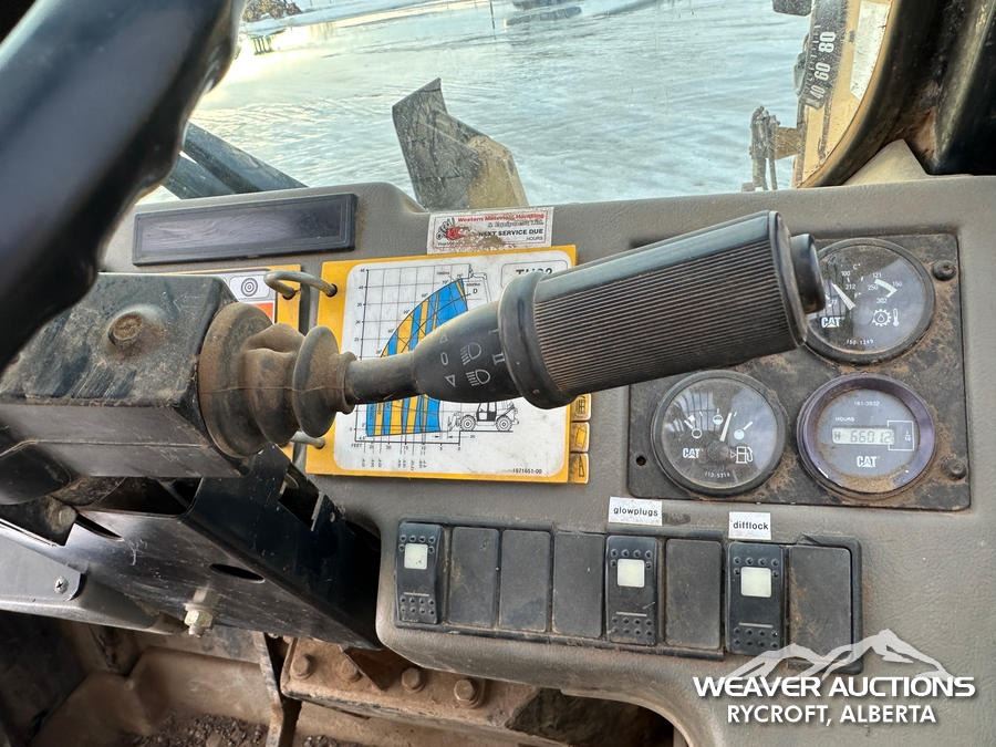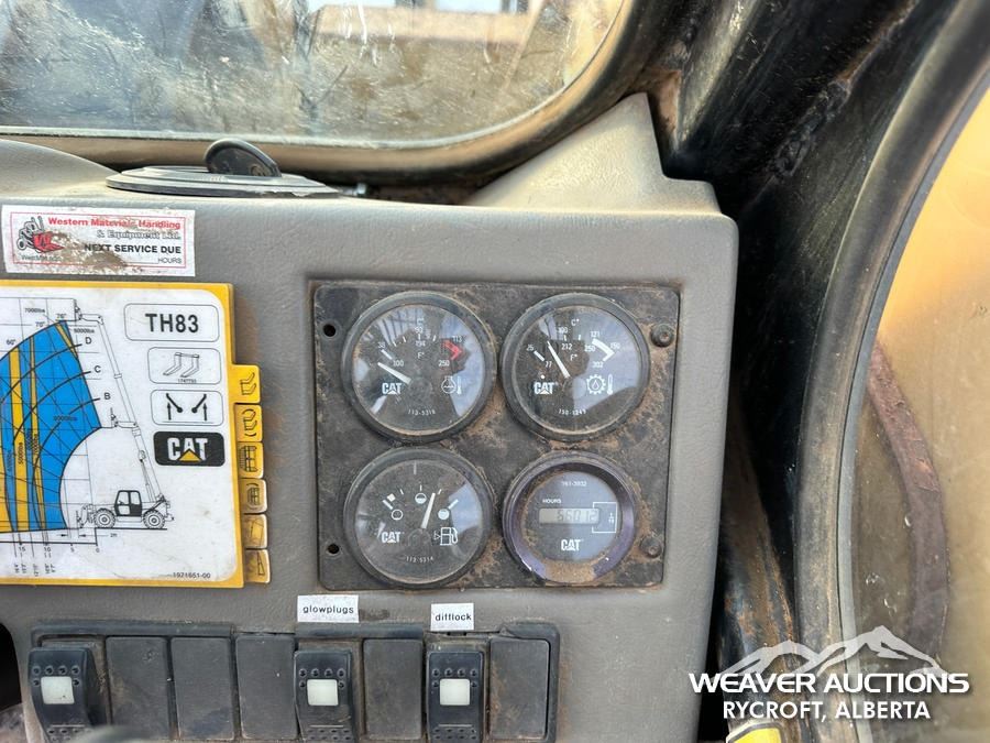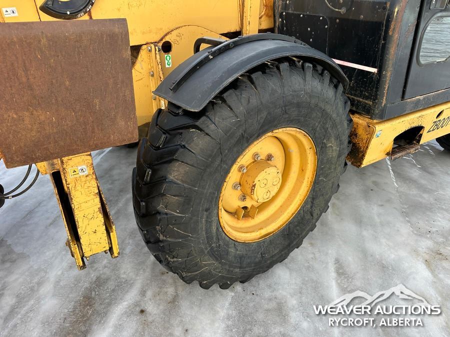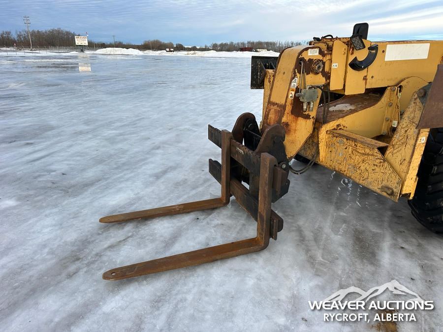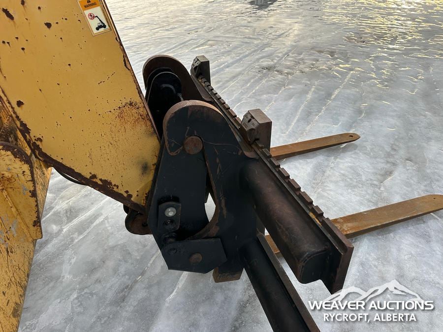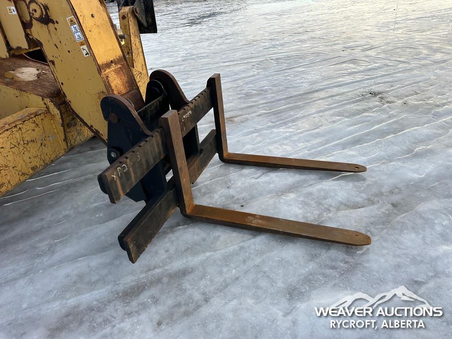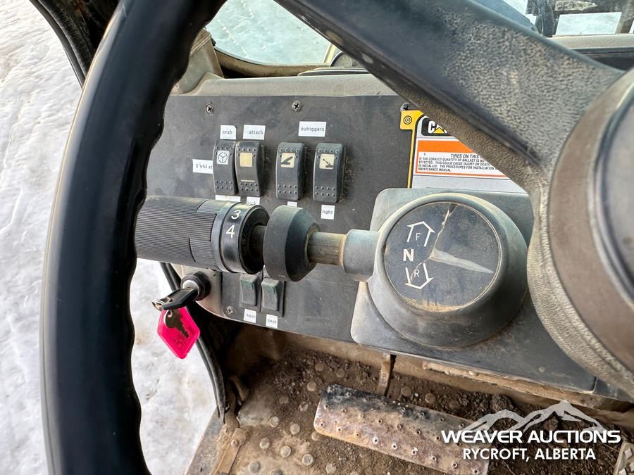Specifications: ENCLOSED CAB, 8000 LB MAX LIFT CAPACITY, 48 IN. FORKS, HYDRAULIC COUPLER, OUTRIGGERS, FRAME LEVELING, AUXILIARY HYDRAULIC PLUMBING, 14.00-24 TIRES, *TRANSMISSION ISSUES