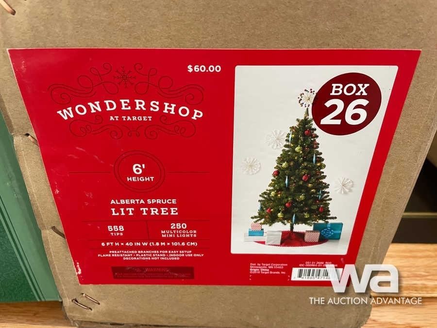 6' X 40" ALBERTA SPRUCE PRE LIT TREE, 32", PRE LIT SILVER ORNAMENTAL WREATH, WREATH WITH LED LIGHTS,