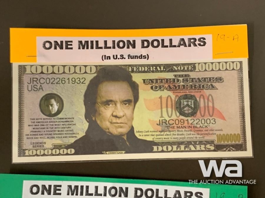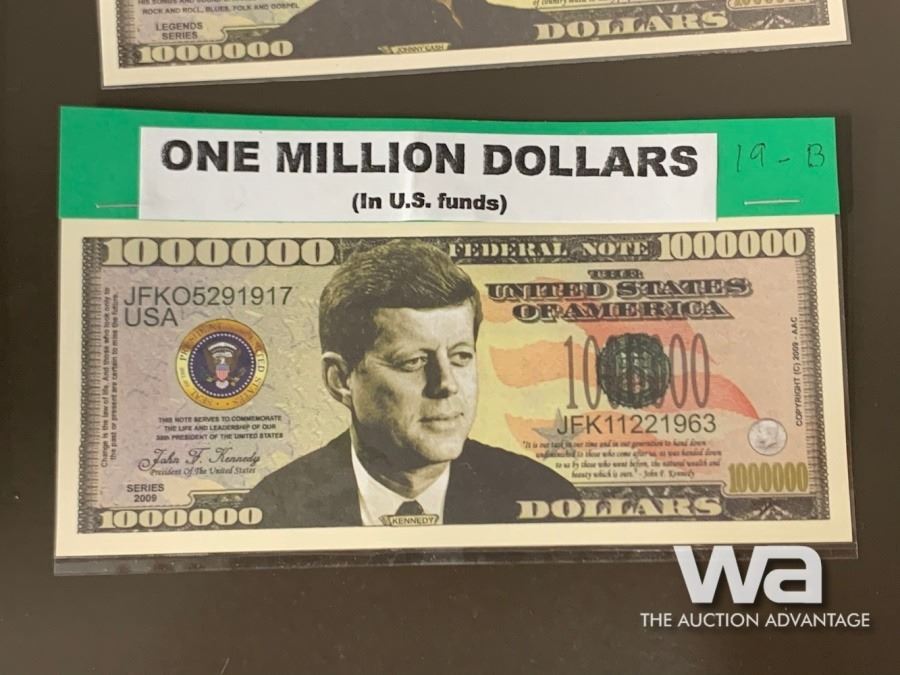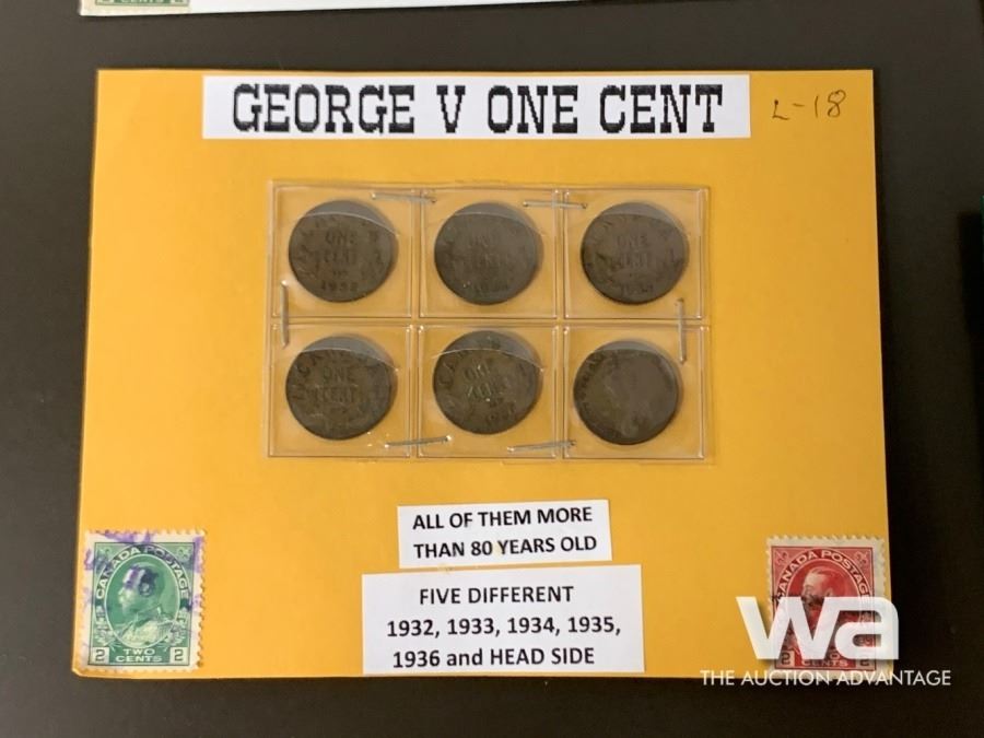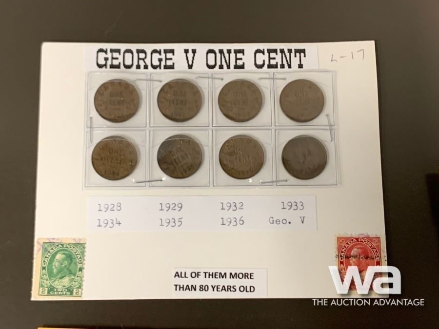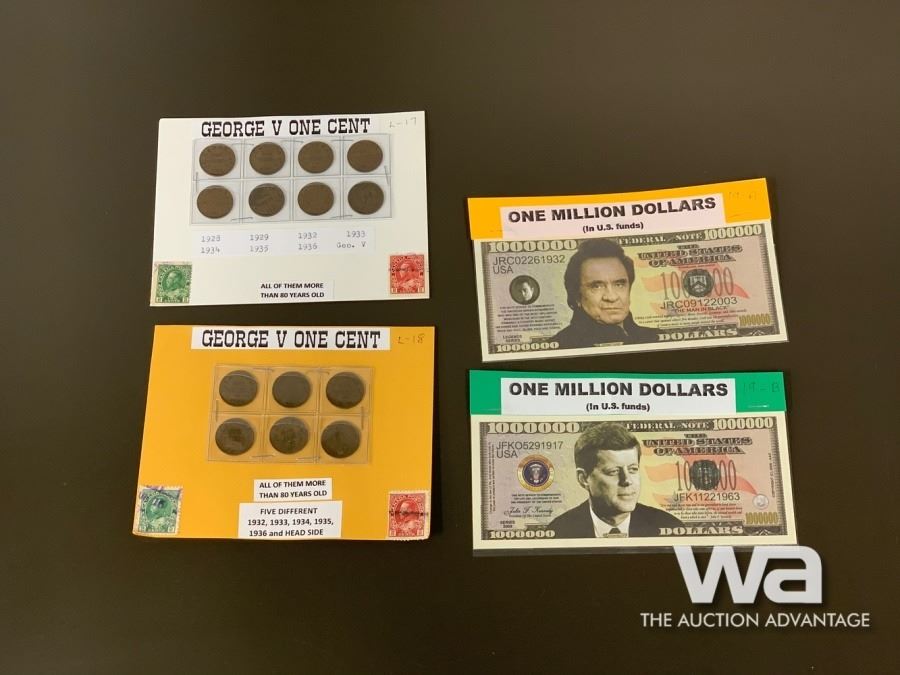 LOT #17: GEORGE V1928 - 1936 ONE CENT COINS LOT #18: GEORGE V 1932 - 1936 ONE CENT COINS LOT #19: FUN - U.S. MILLION DOLLAR BANK NOTES - JOHNNY CASH & JOHN F. KENNEDY