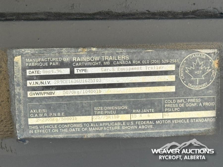 Specifications: 1997 RAINBOW T/A TRAILER, 5,000 LB. AXLES, FRIDGE, BED, TOILET, SHOWER