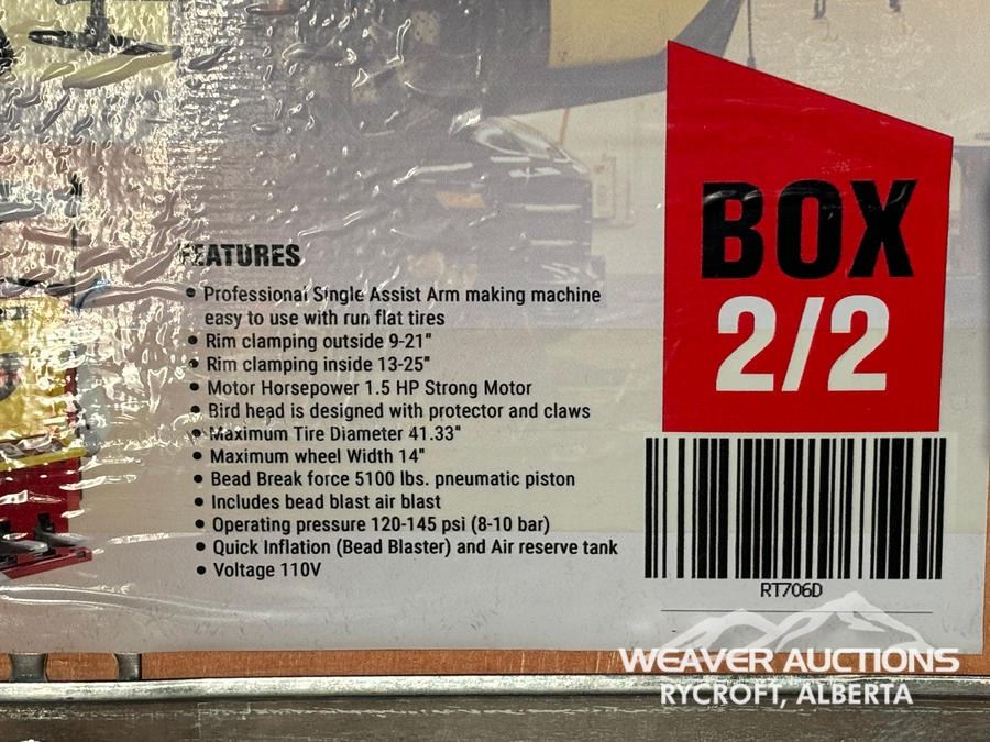 Specifications: *UNUSED, (2) BOXES, 1.5 HP, 41.33 IN. MAX TIRE DIAMETER, 14 IN. MAX WHEEL WIDTH