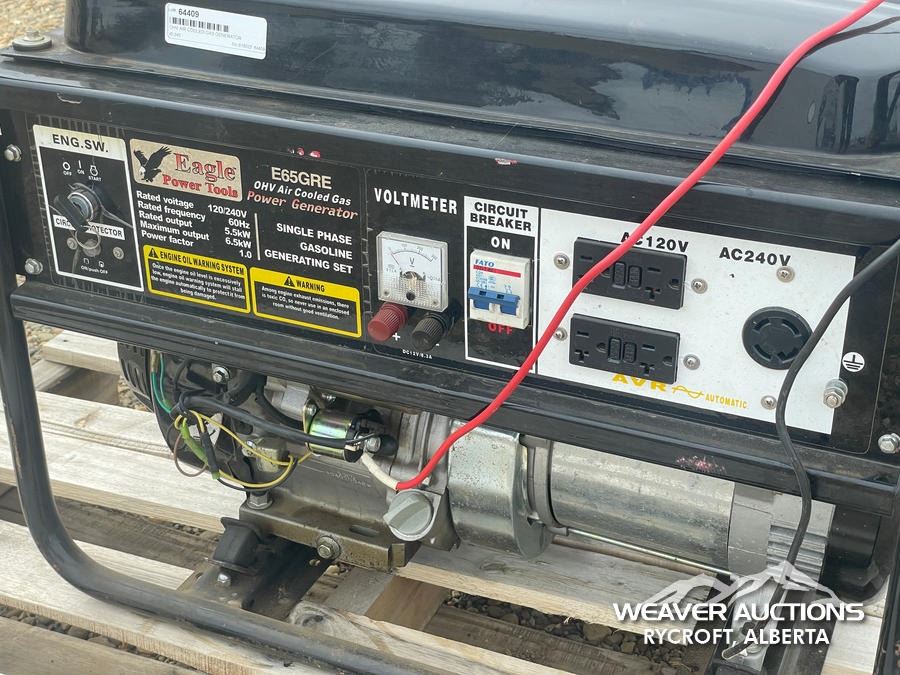 Specifications: 120/240V RATED VOLTAGE, SINGLE PHASE, 6.5 KW MAX OUTPUT, 5.5 KW RATED OUTPUT, 13 HP