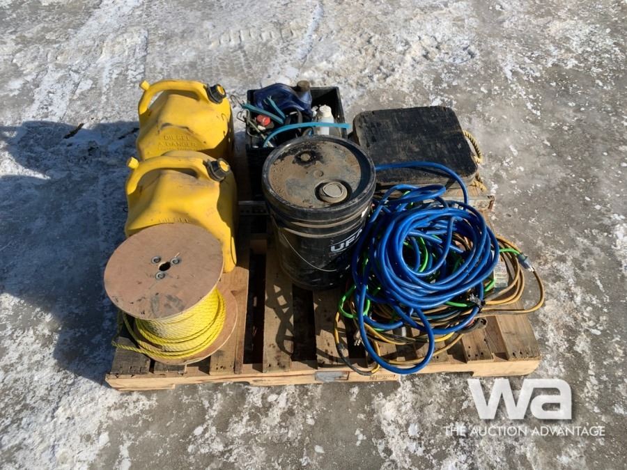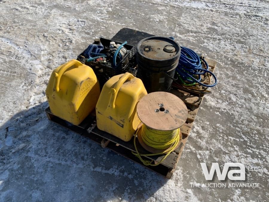 TARP STRAPS, ASSORTED OIL JUGS