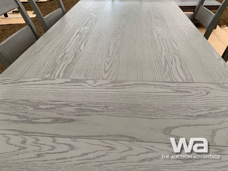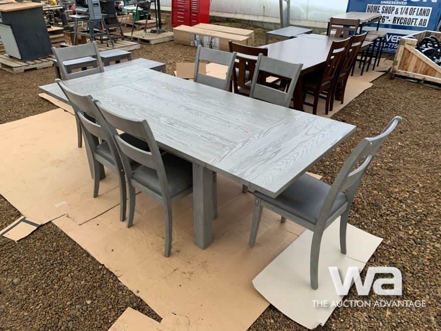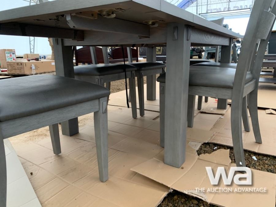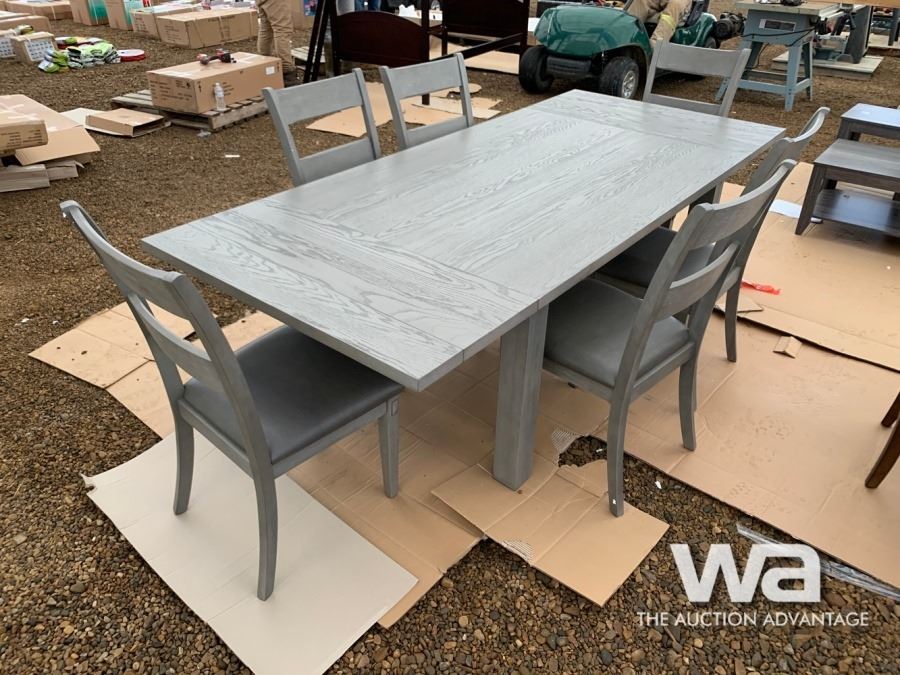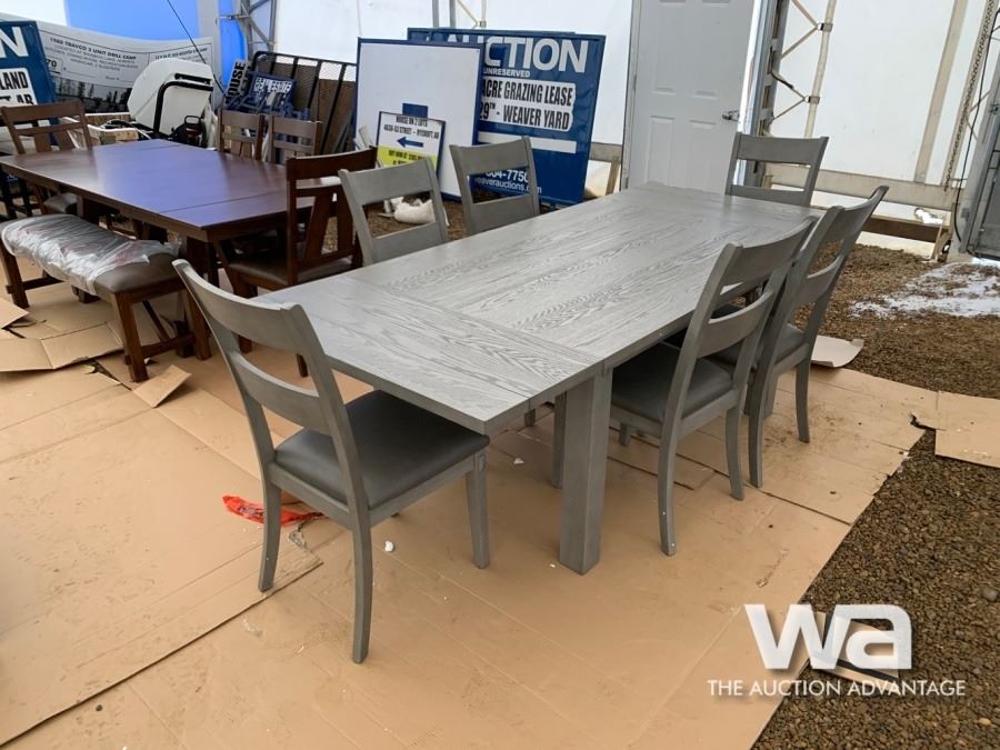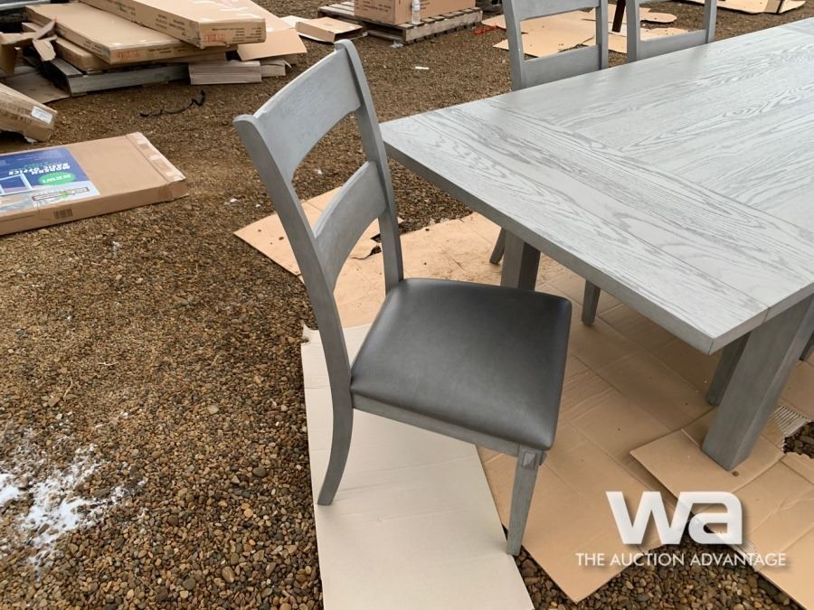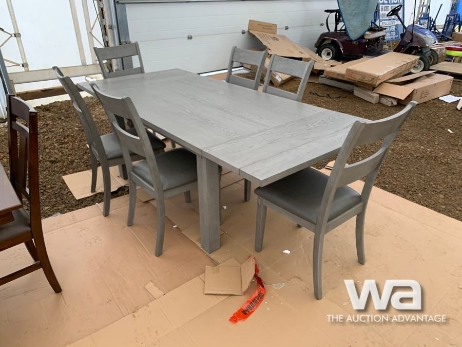 GREY, (6) CHAIRS, BUILT IN TABLE EXTENSIONS