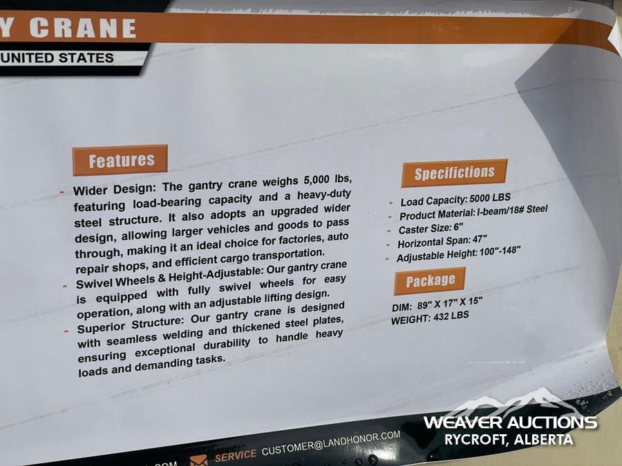 LANDHONOR 5000 LB. GANTRY CRANE