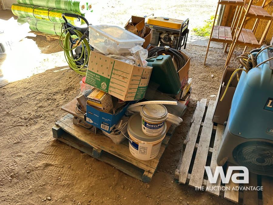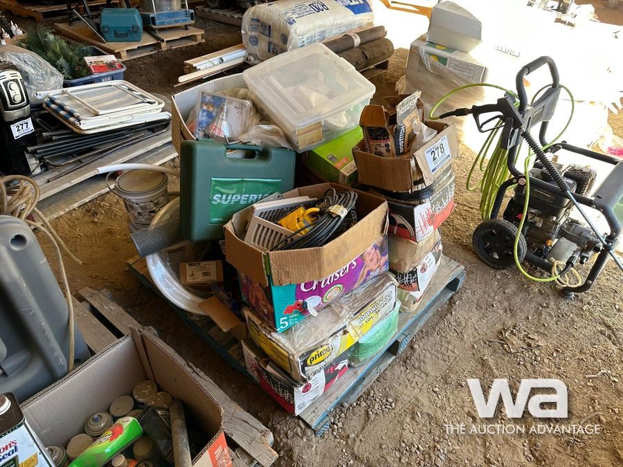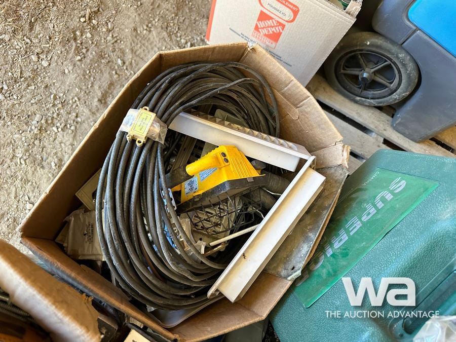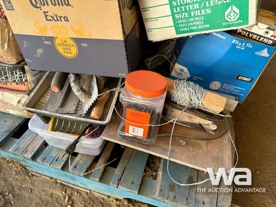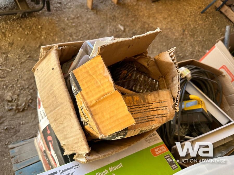 NAILS, LIGHTS, CORDS, PAINT TRAYS, TILE ADHESIVE