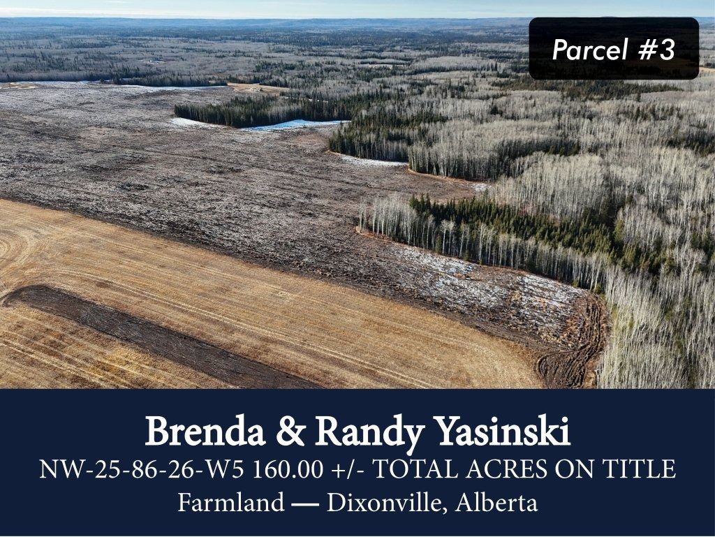 Specifications: 52 +/- ACRES CULTIVATED, 10 +/- ACRES BROKE IN 2025, LIBERTY CANOLA IN 2025, PEAS IN 2024, BALANCE MARKETABLE ASPEN & SPRUCE, 2025 TAXES $92.92