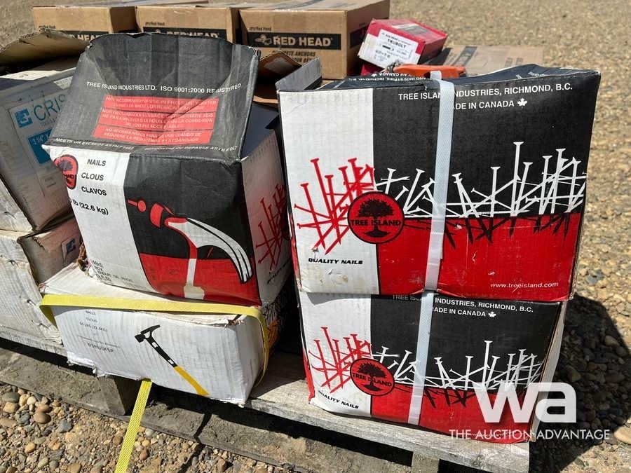 PALLET OF 5/8X7" & 5/8X6" WEDGE ANCHORS, 5" NAILS
