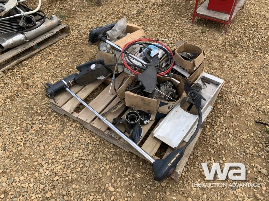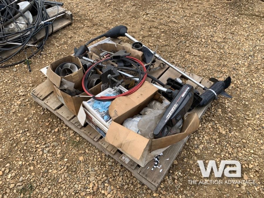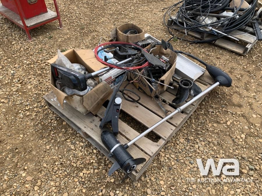 PALLET OF MISC. BOAT PARTS, (2) TROLLING MOTORS