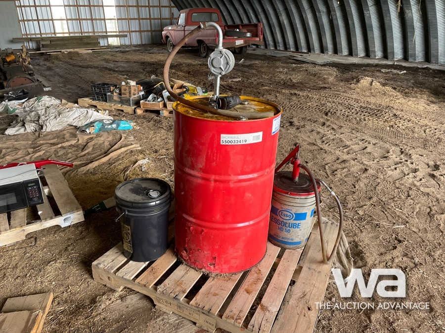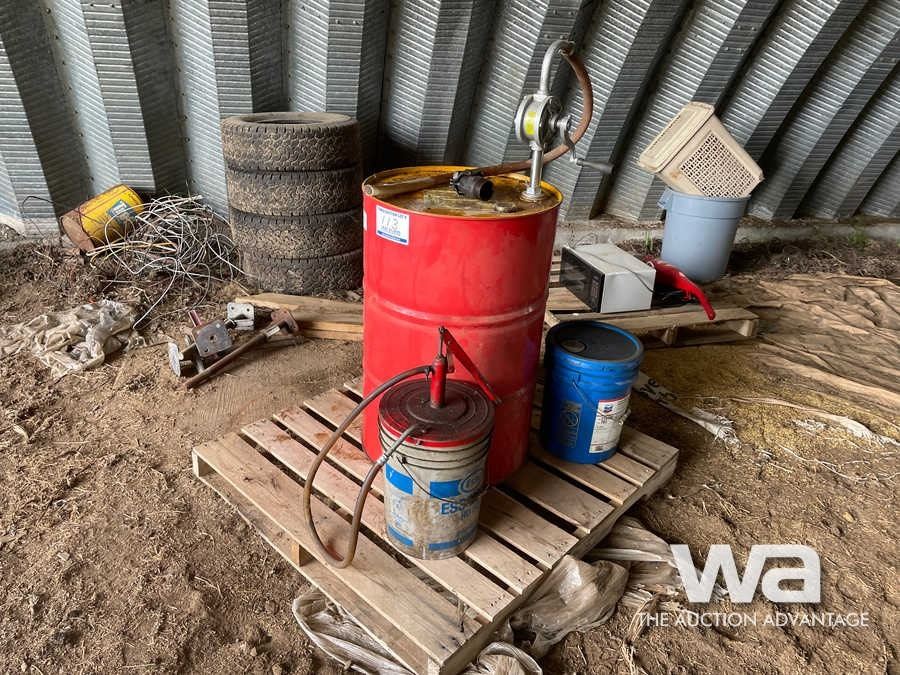 PARTIAL OIL BARREL & PUMP, OIL PAIL & PUMP