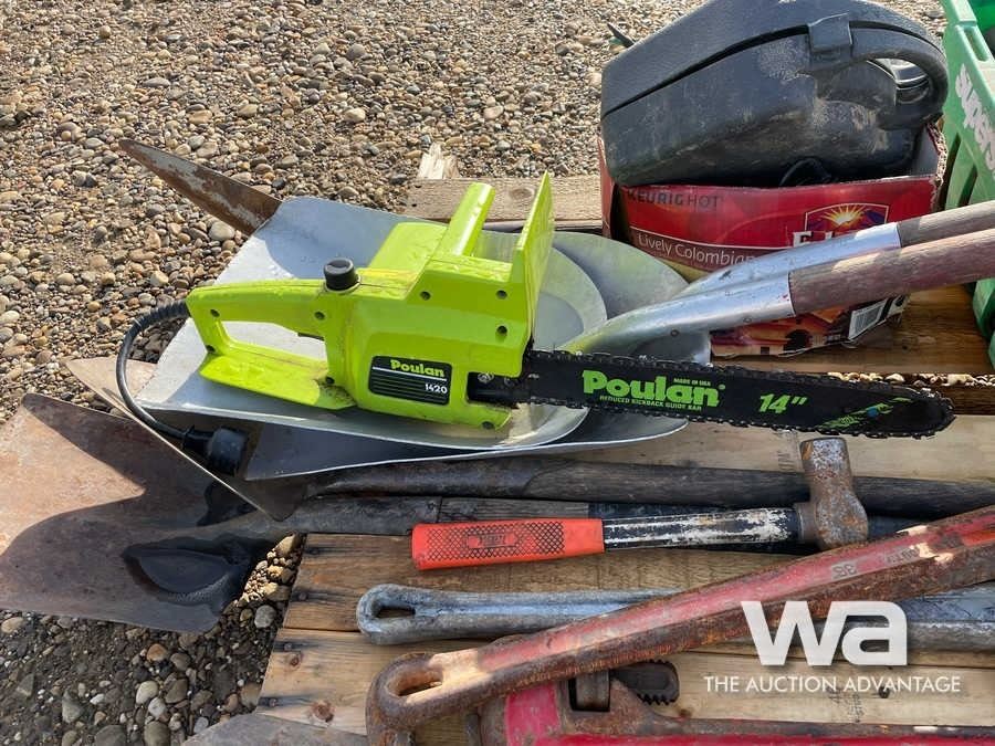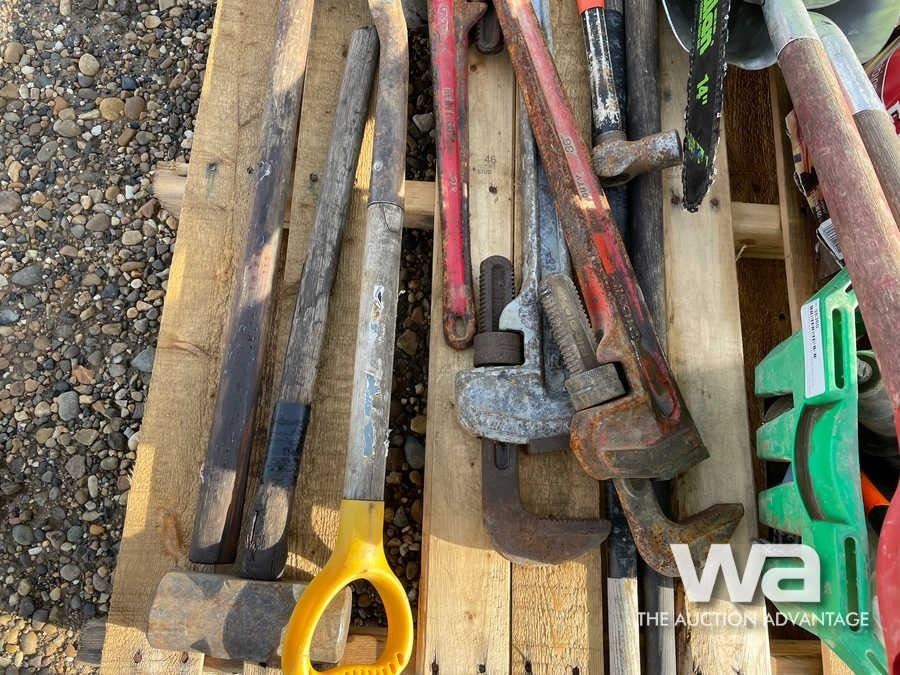 PIPE WRENCHES, POULAN SAW, SHOVELS, HAMMERS