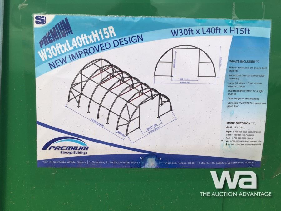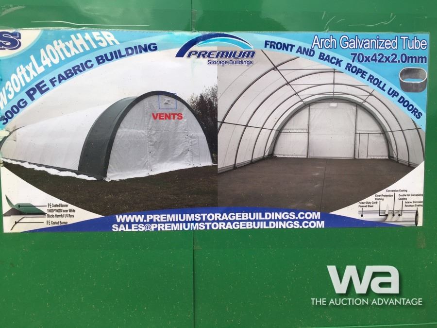 11.5X11.5' ROLL UP DOORS ON EACH END, WHITE/GREEN