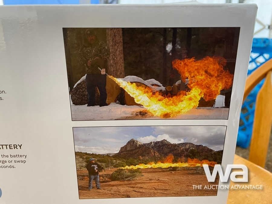 FLAMETHROWER, RECHARGABLE BATTERY, BATTERY CHARGER, BACKPACK FUEL TANK, THROWS FLAME UP TO 25',