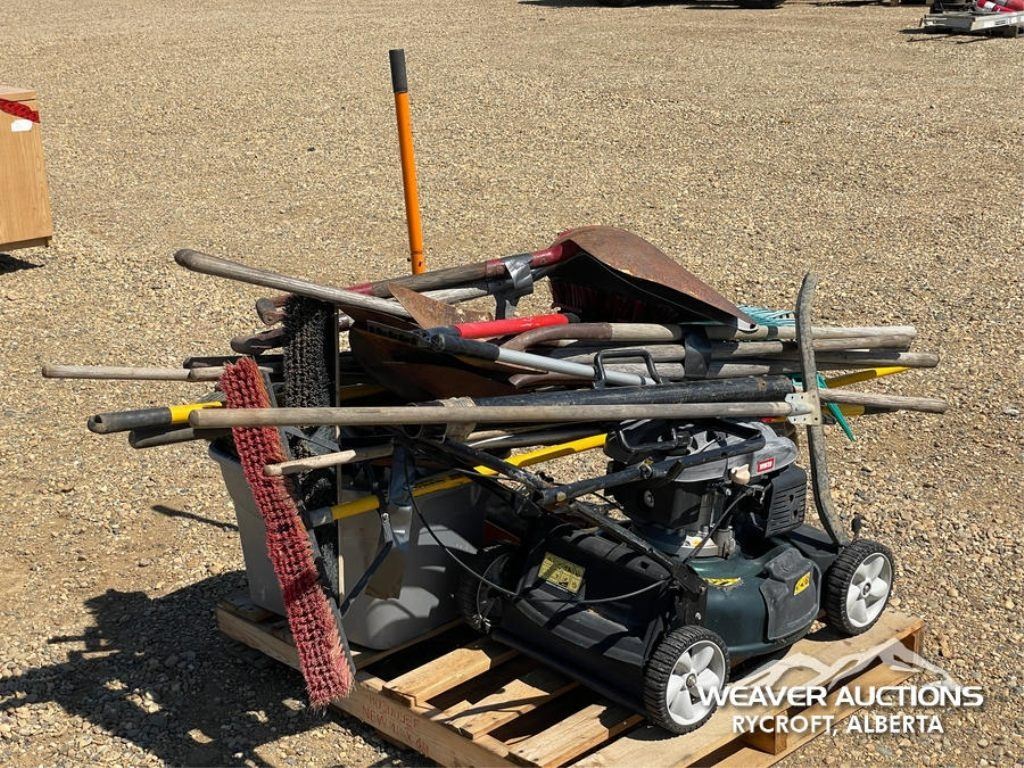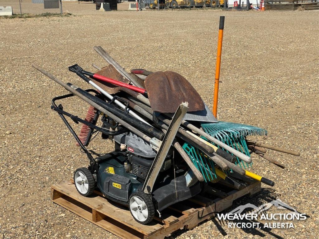 Specifications: FLOOR JACK, SHOVELS, BROOMS, YARD WORKS 21 IN. LAWN MOWER