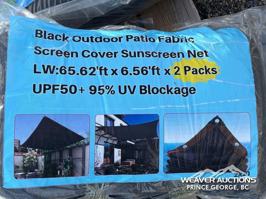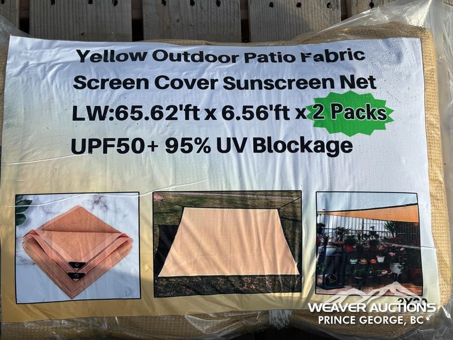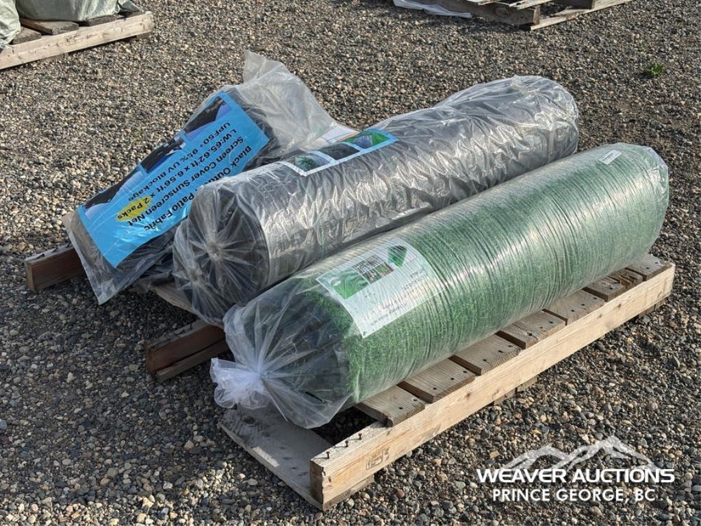 Specifications: (1) ROLL OF W 3.3 FT. X L 49.2 FT. ARTIFICIAL GRASS TURF (2) YELLOW PATIO FABRIC SUN COVER SCREEN (2) BLACK PATIO FABRIC SUN COVER SCREEN (2) ROLLS OF W 13 FT. X L 300 FT. WOVEN LANDSCAPE FABRIC
