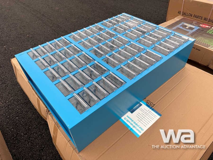 STEEL CABINET WITH 75 CLEAR PLASTIC DRAWERS