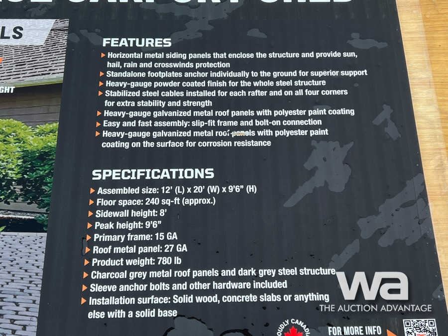 TMG 12 FT. X 20 FT. METAL CARPORT SHED