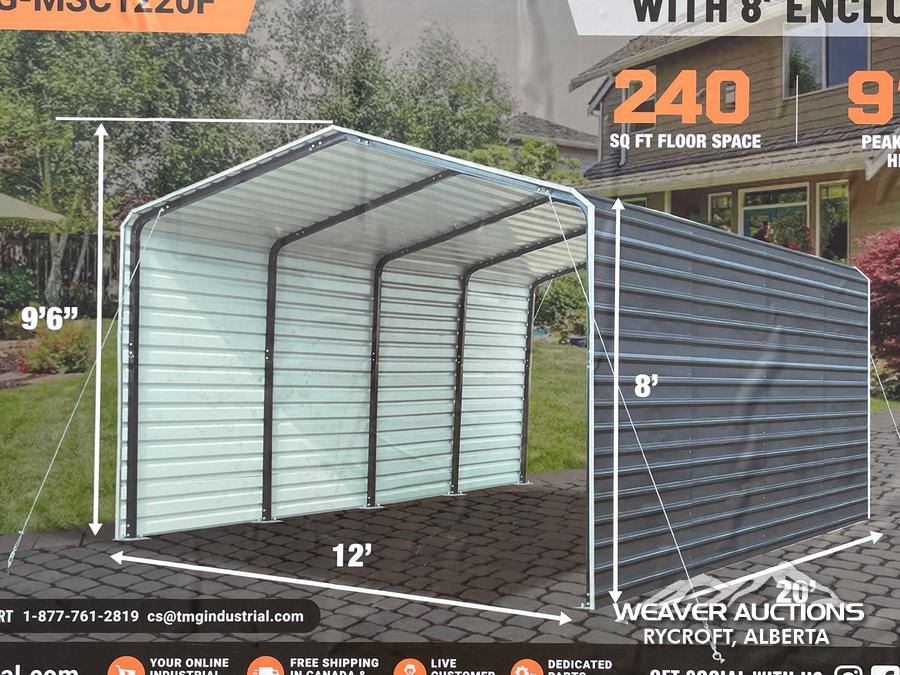Specifications: *UNUSED, 27 GAUGE METAL PANELS, 8 FT. ENCLOSED SIDEWALLS, APPROX. 240 SQ-FT. FLOOR SPACE