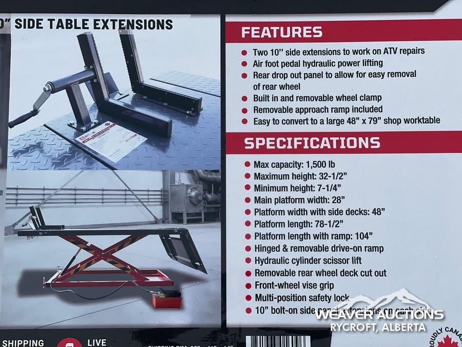 Specifications: *UNUSED, 48 IN. WORK PLATFORM, AIR & FOOT PEDAL OPERATING