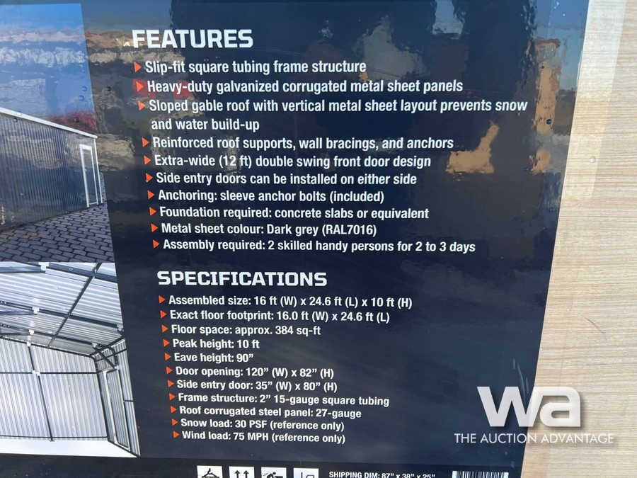 TMG 16 FT. X 24 FT. METAL GARAGE WITH DOOR