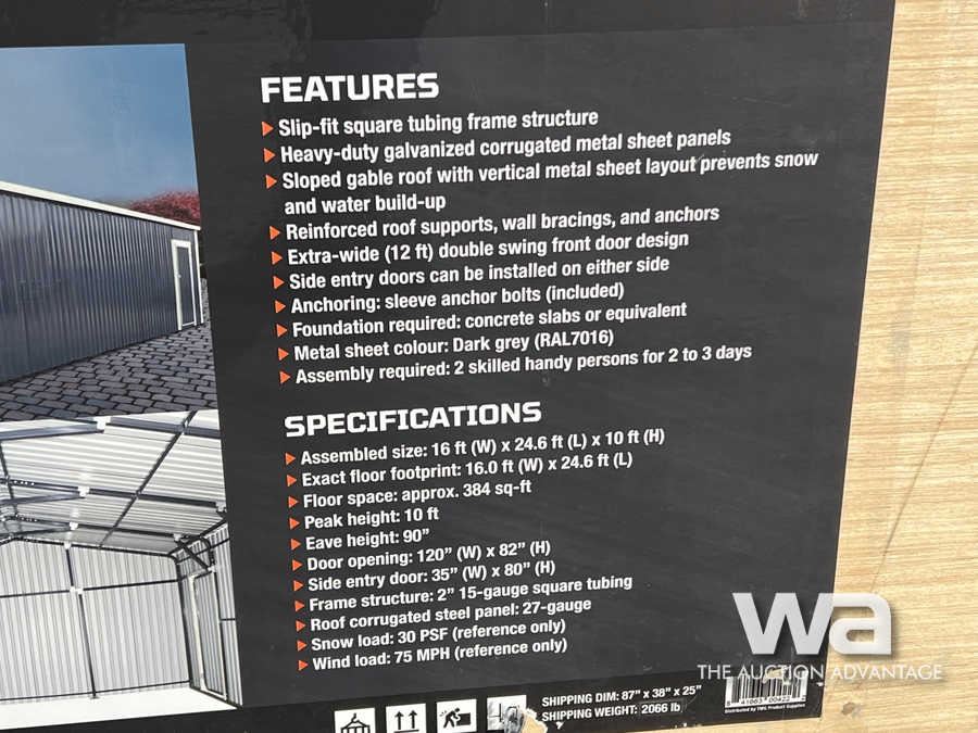 TMG 16 FT. X 24 FT. METAL GARAGE WITH DOOR