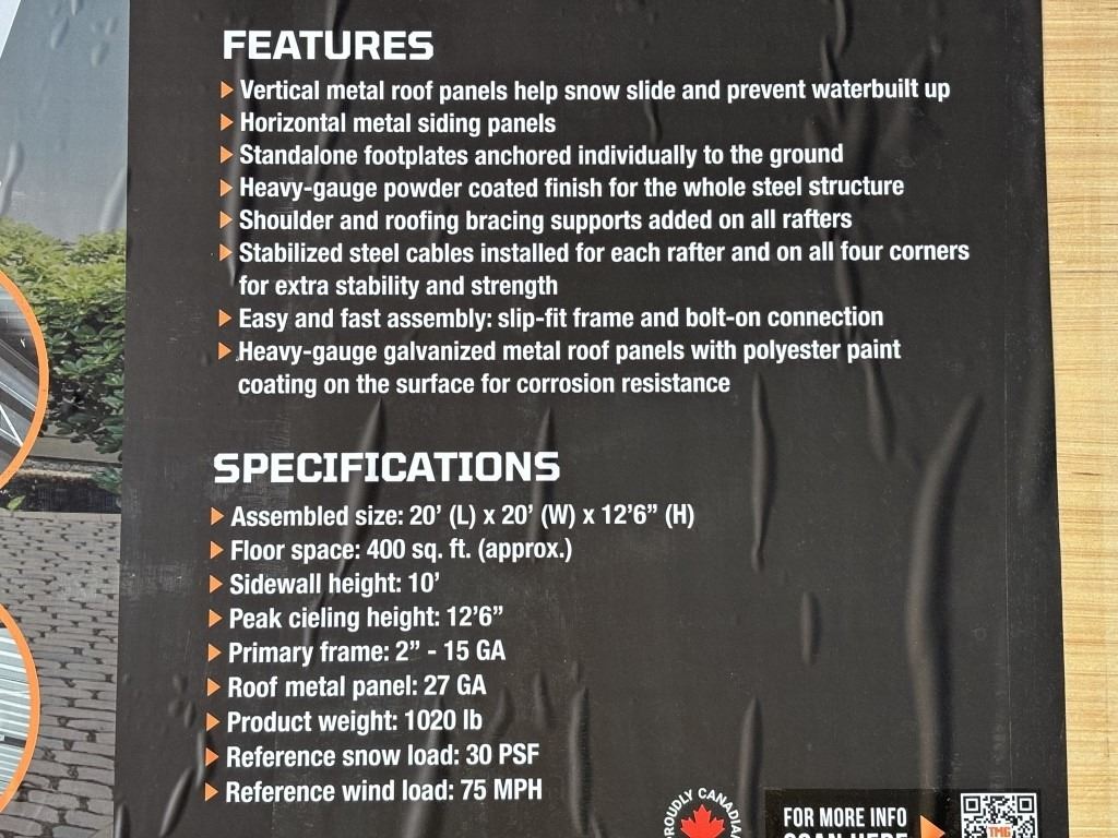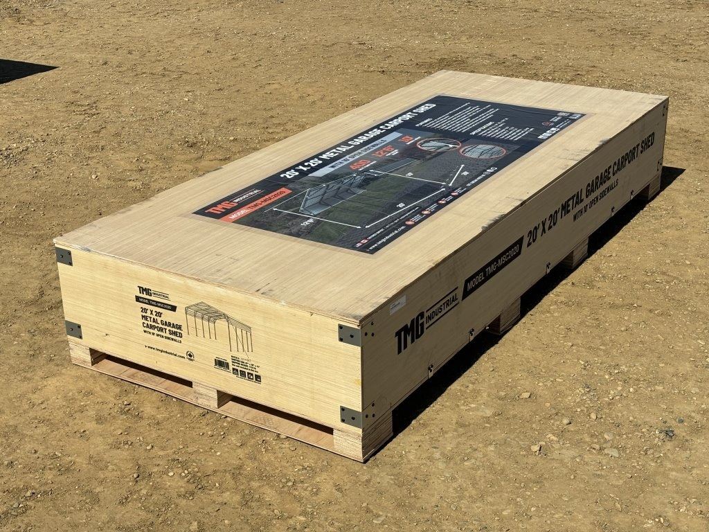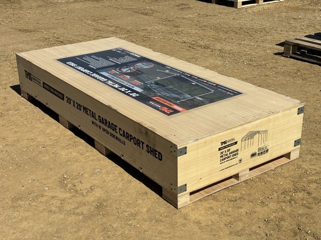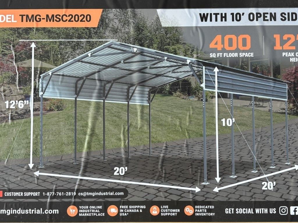 Specifications: *UNUSED, 10 FT. OPEN SIDEWALLS, 27 GA CORRUGATED PANELS, 400 SQ-FT.