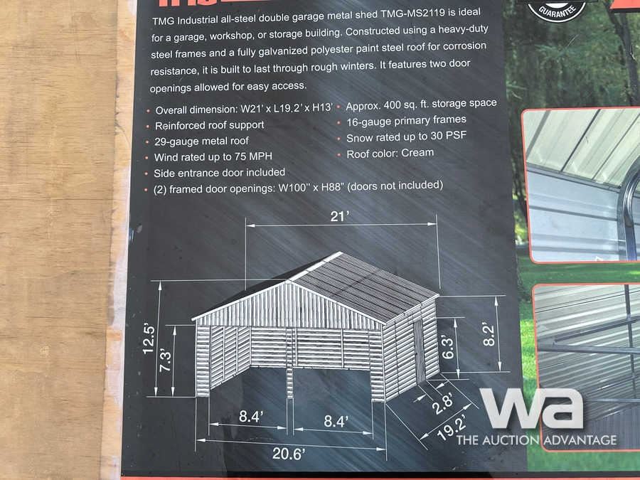 TMG 21 X 19 FT. DOUBLE GARAGE METAL SHED