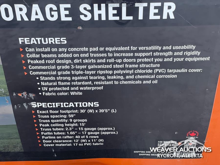 TMG 30 X 40 FT. PEAK CEILING STORAGE SHELTER
