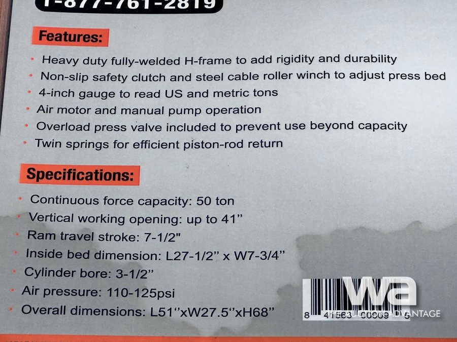 TMG 50 TON CAPACITY HYDRAULIC SHOP PRESS