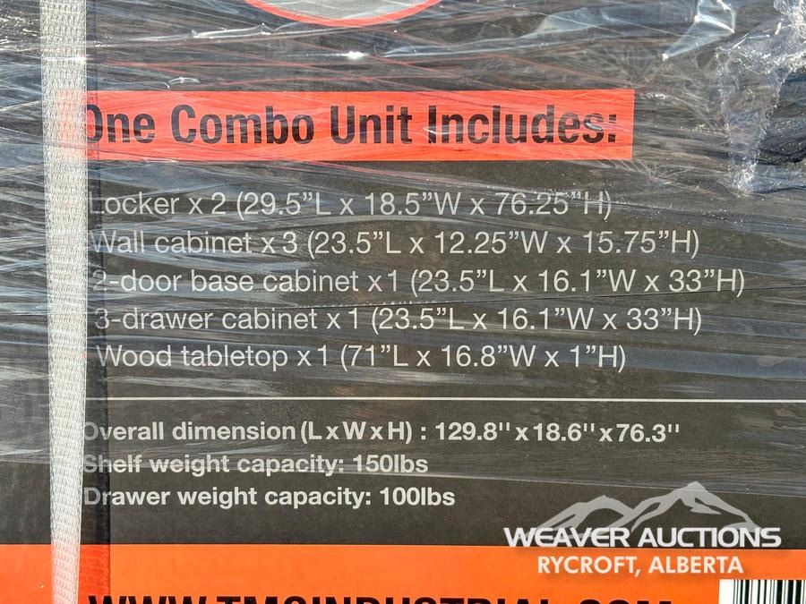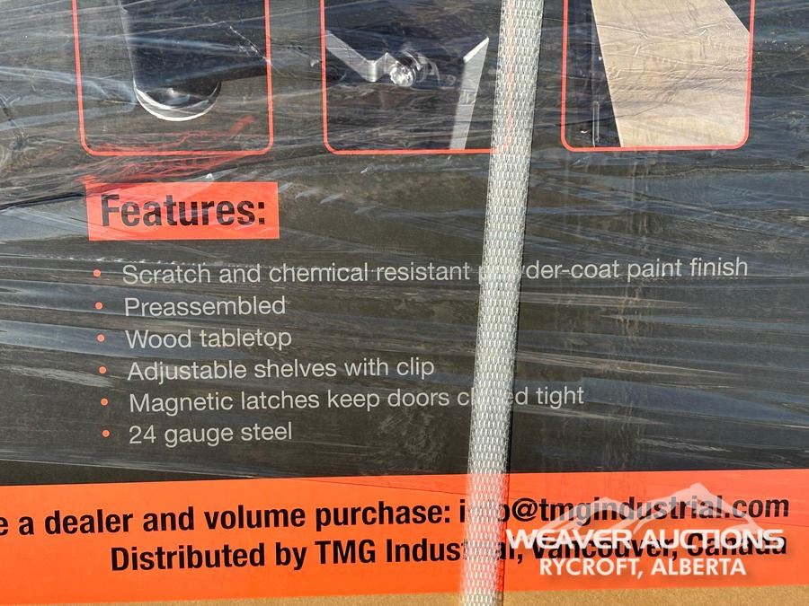 Specifications: *UNUSED, (3) BOXES, WOOD TABLE TOP, ADJUSTABLE SHELVES, MAGNETIC LATCHES