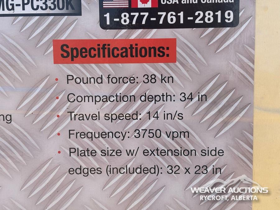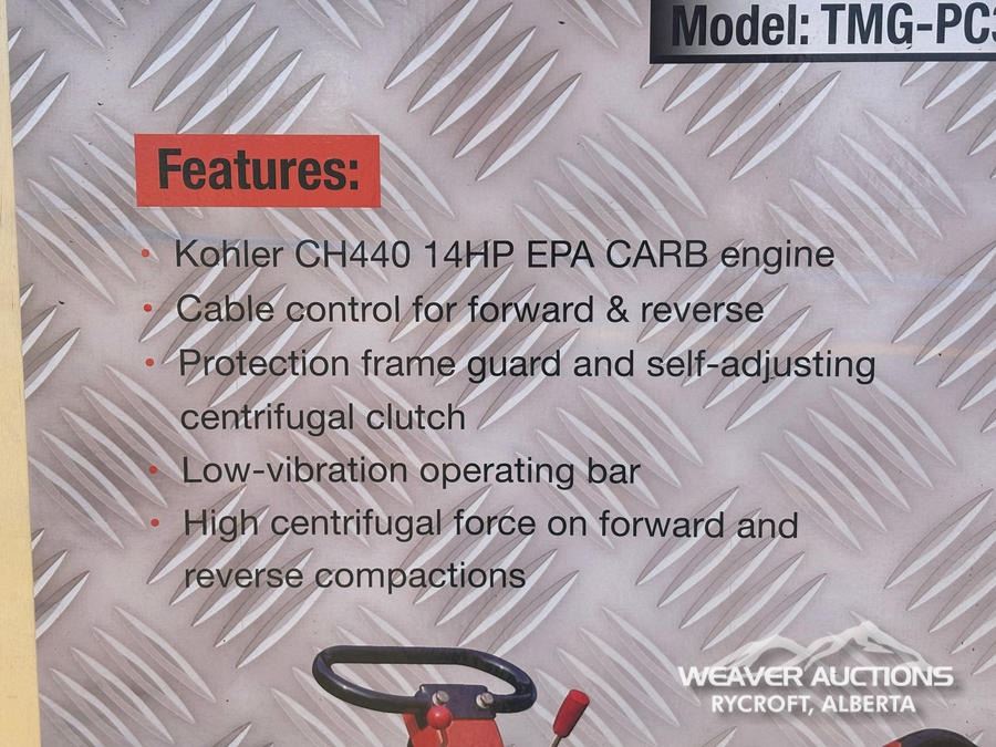 Specifications: *UNUSED, 14 HP KOHLER ENGINE, 34 IN. COMPACTION DEPTH