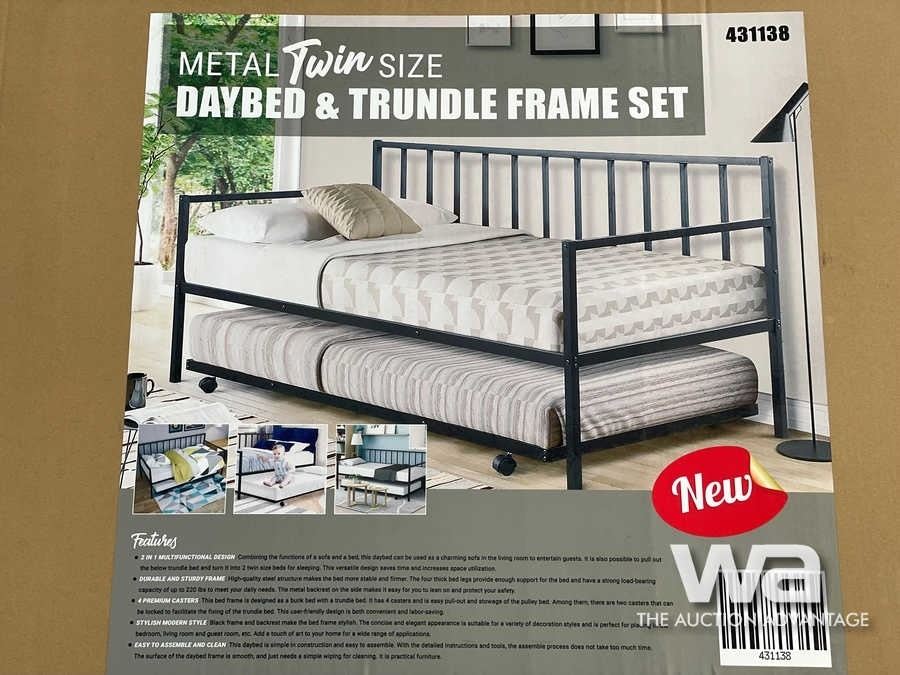 (UN-USED) METAL TWIN DAYBED & TRUNDLE FRAME SET