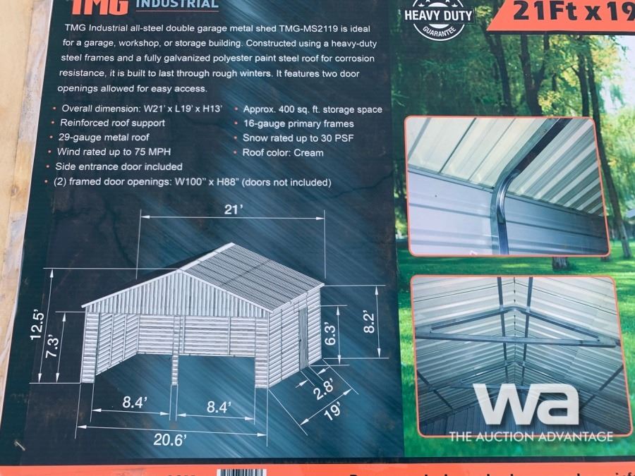 (UNUSED) 21 X 19 FT. DOUBLE GARAGE SHED