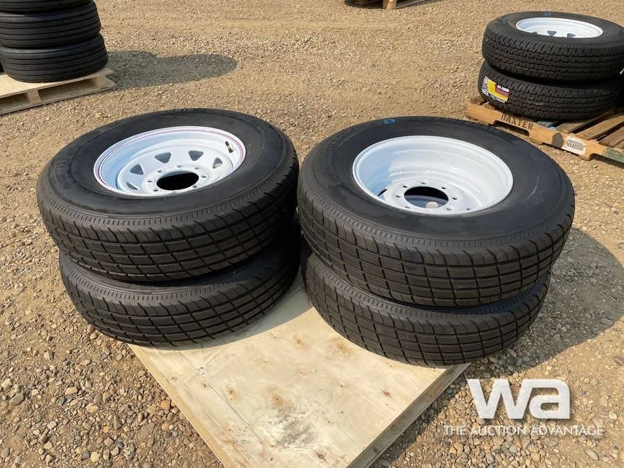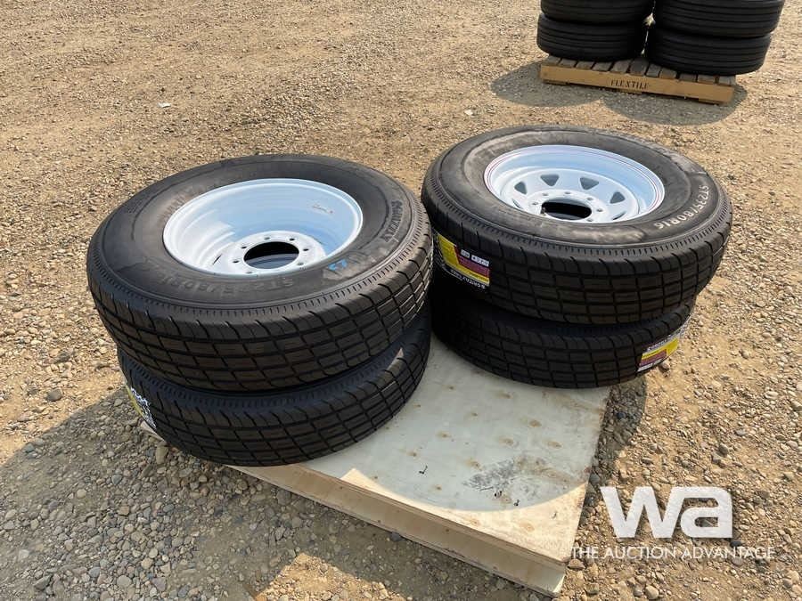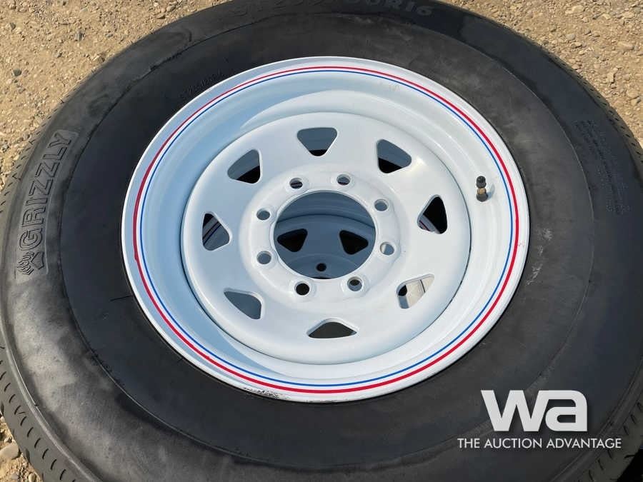 (UNUSED) (4) GRIZZLY 235/80R16 TRAILER TIRES & RIM
