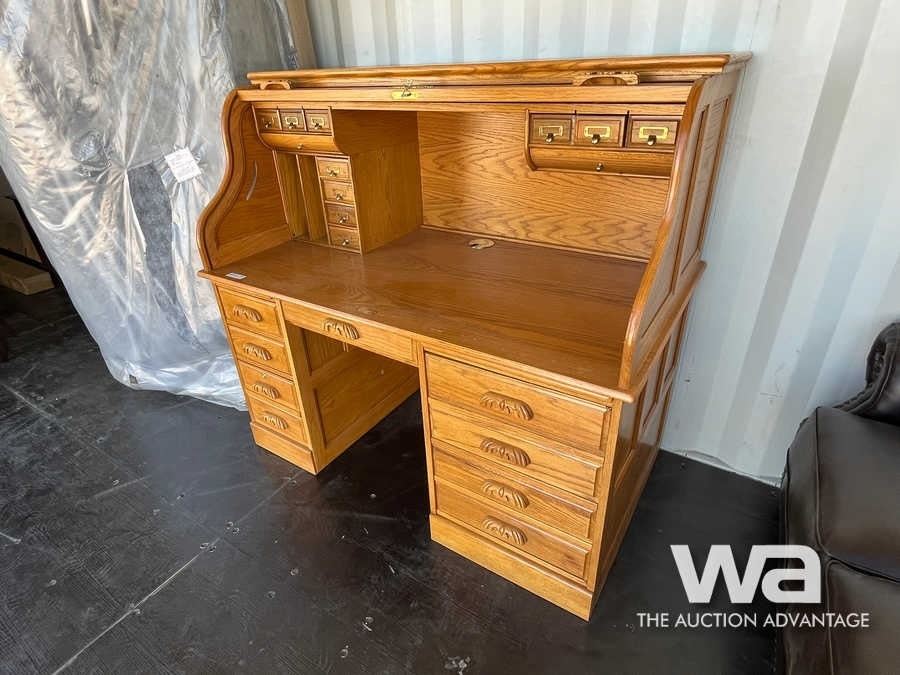 (UNUSED) 57" COMPUTER ROLL TOP DESK