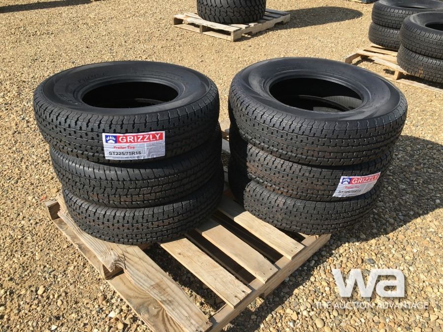 (UNUSED) (6) GRIZZLY 225/75R15 TRAILER TIRES