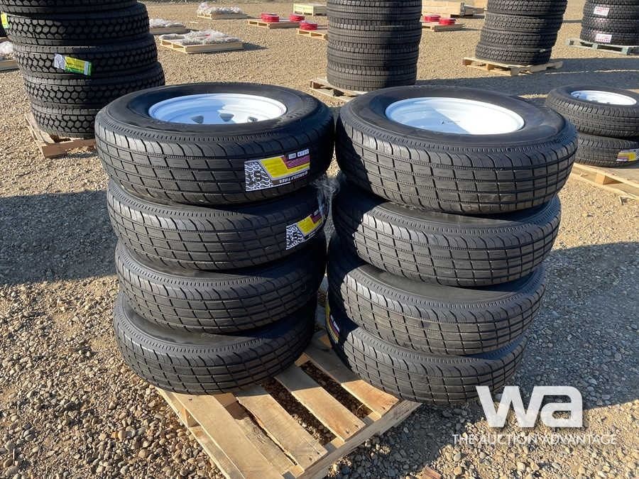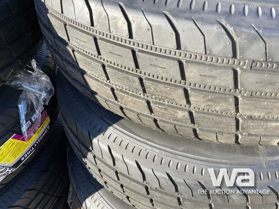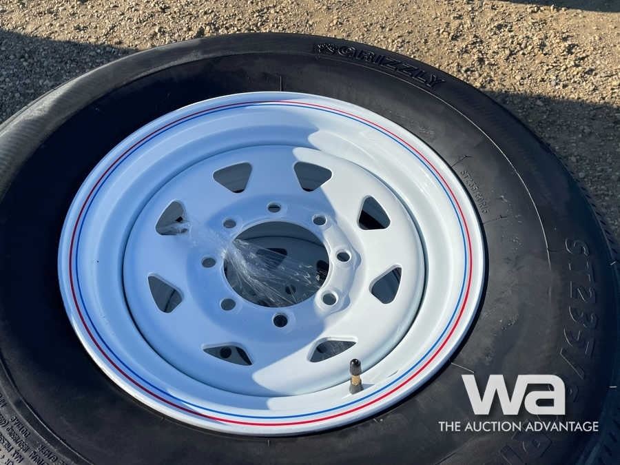 (UNUSED)(8) GRIZZLY 235/80R16 TRAILER TIRES & RIMS