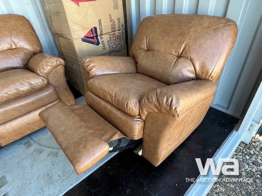 (UNUSED) LEATHER RECLINING SOFA, LOVESEAT & CHAIR