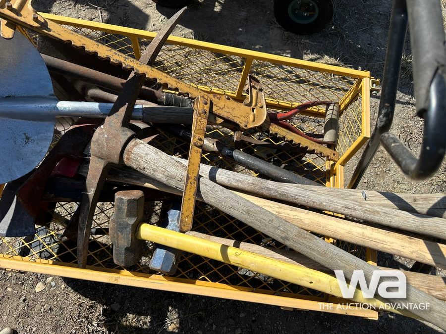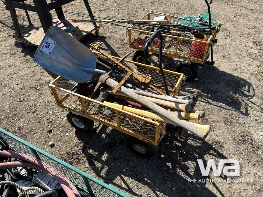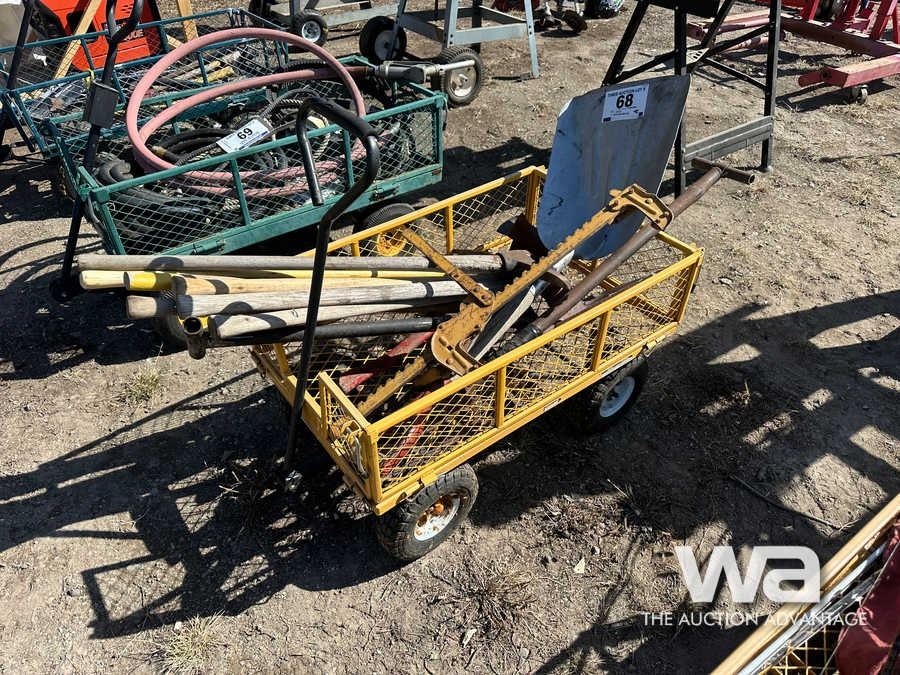 WAGON, HAND TOOLS, SHOVELS, FENCE STRETCHER