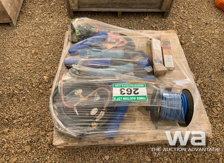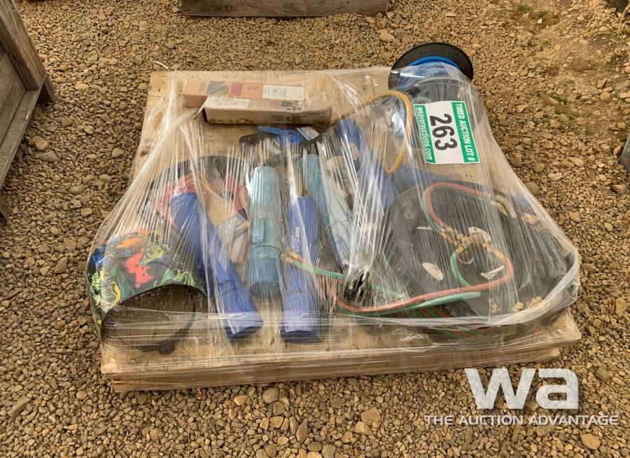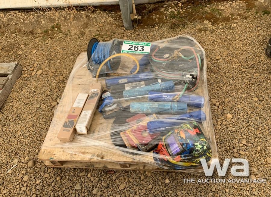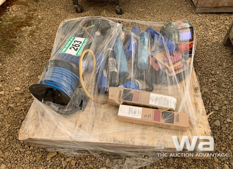 WELDING ROD, WELDING HELMET, CUTTING TORCH HOSE & GAUGES, AIR HOSE & REEL