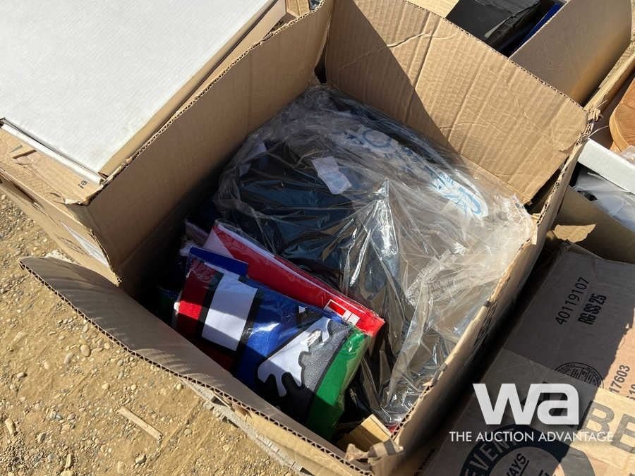 TABLE CLOTHES, BOX OF DVDS