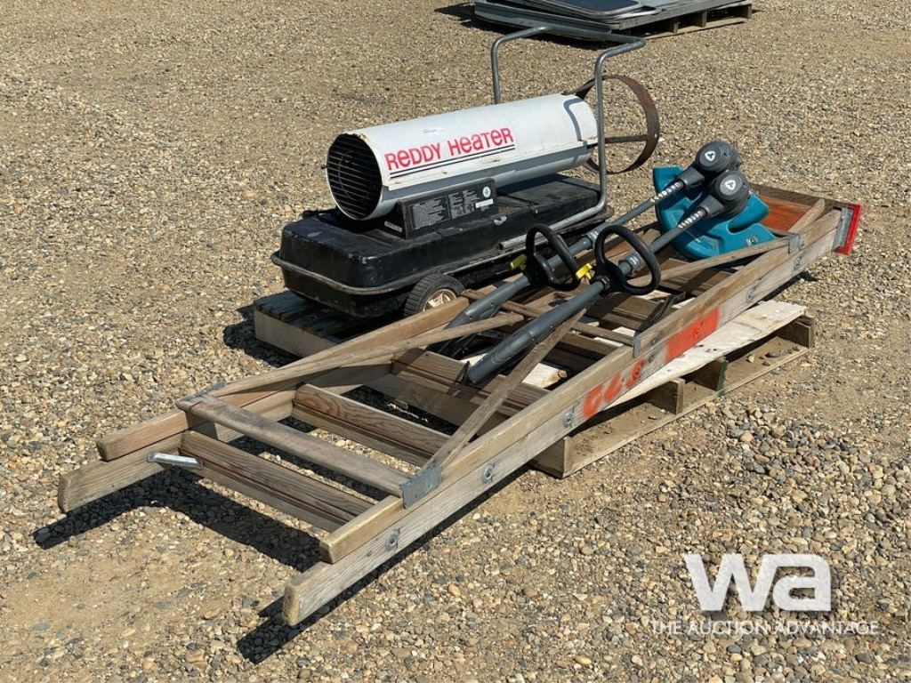 WOODEN STEP LADDER, (2) WEED WACKERS